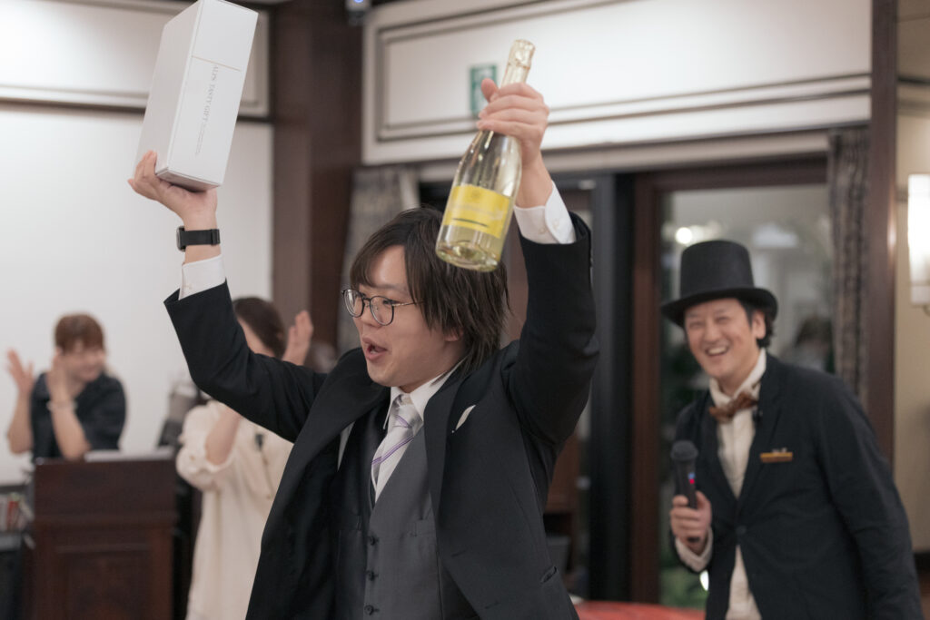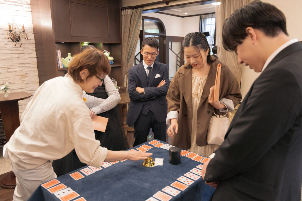 披露宴ではテーブル対抗ゲームなど、大人も子どもも大盛り上がり