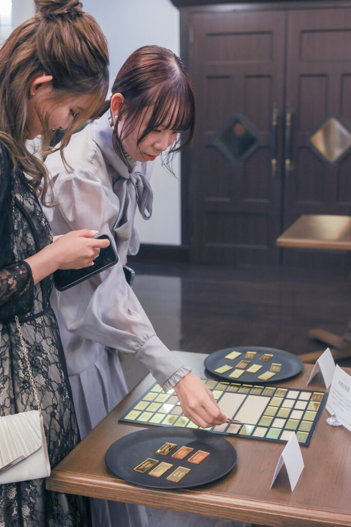 ゲスト一人ひとりがゴールドのピースをはめ込み、最後におふたりが仕上げて完成。