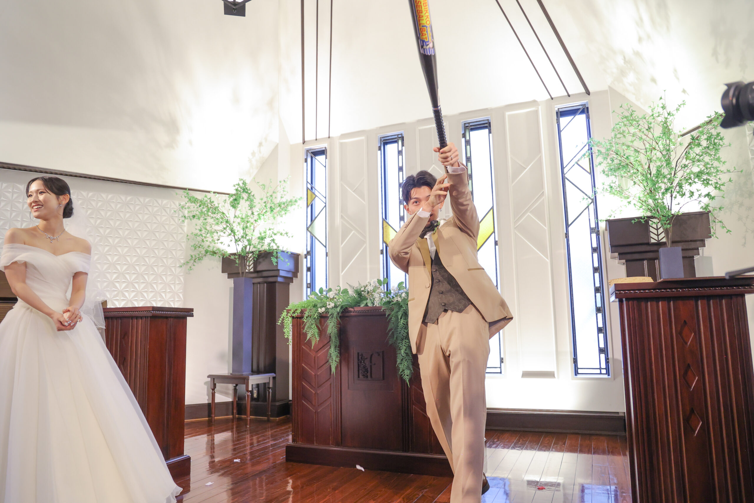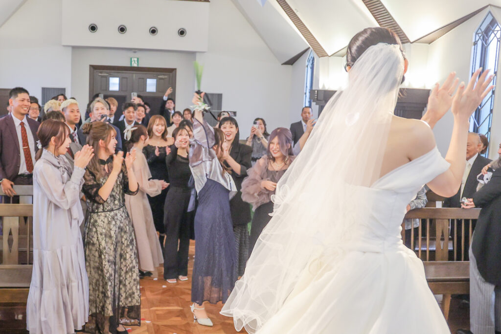 フラワーシャワーに、ブーケトス、そして野球トス!
