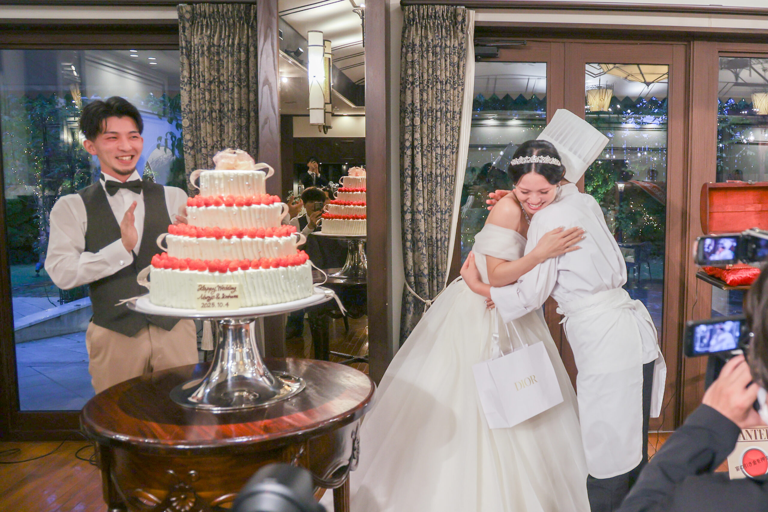 自身が運んで登場するサプライズに、新婦様も思わず涙…。