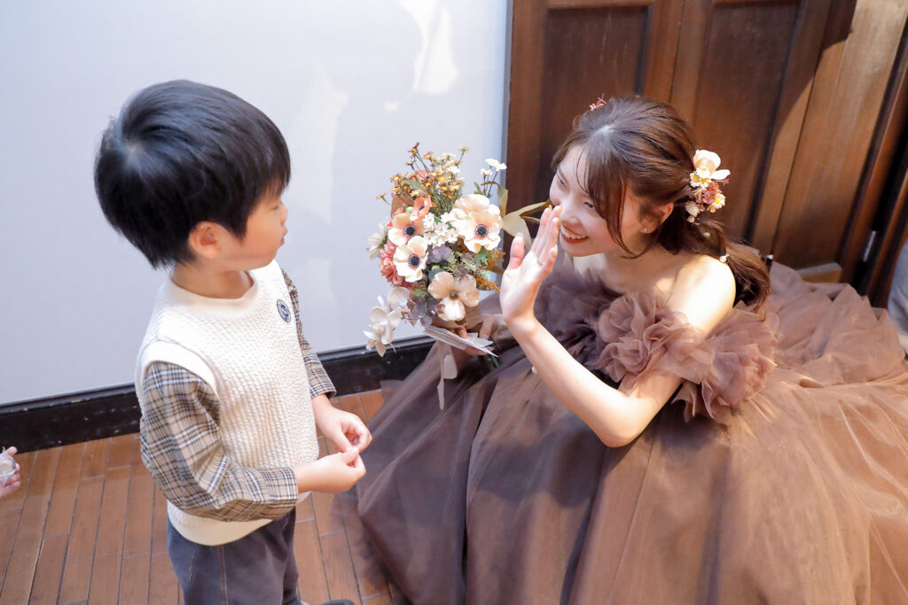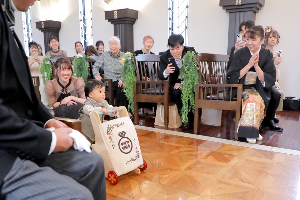 リングを運んでくれたのは、新婦甥っ子のリングボーイ。