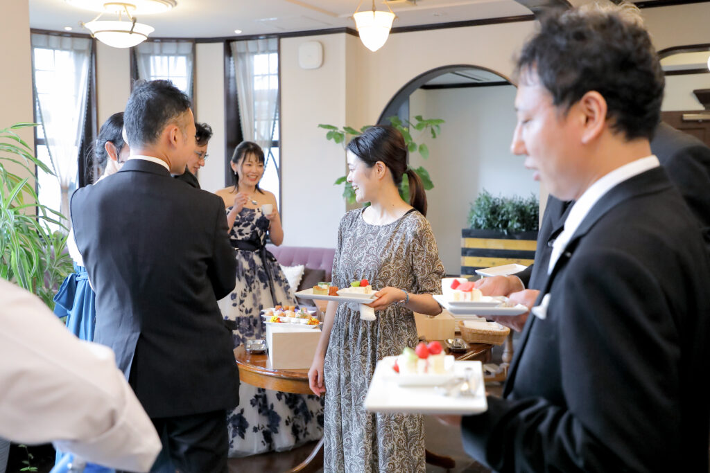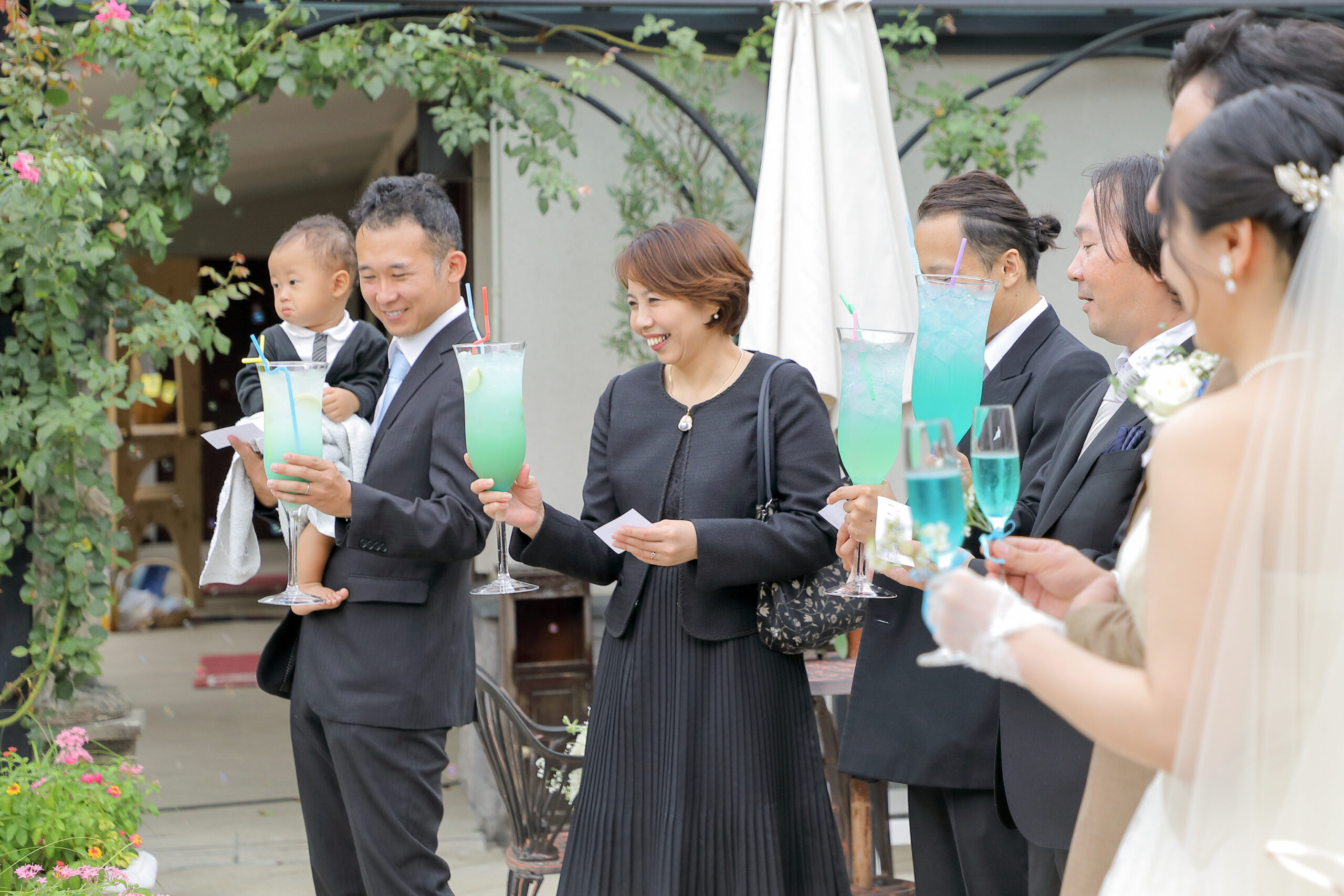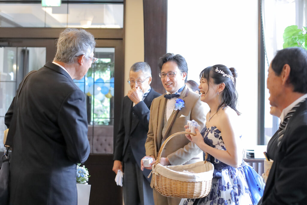 青のアイテムを身に着けて、自然とゲスト同士の会話も弾みます。