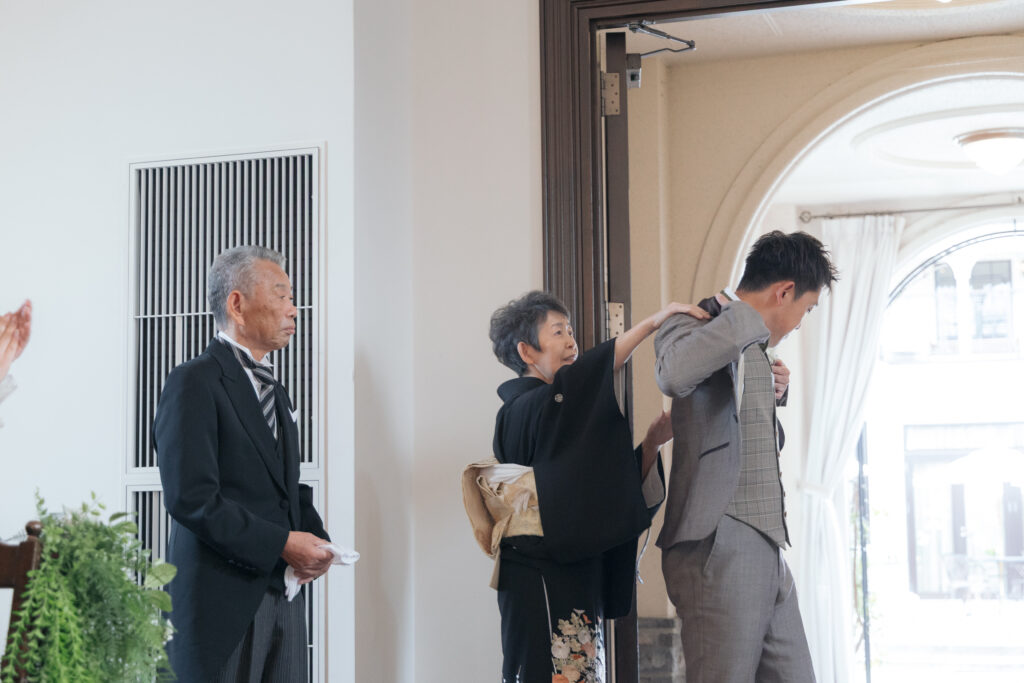 新郎Kさんは、お母さまからジャケットセレモニー、