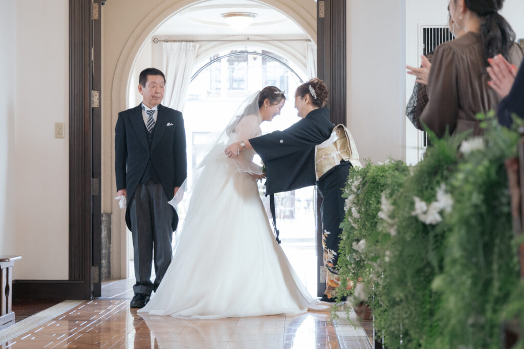 新婦Mさんは、お母さまからのベールダウンを受けてご入場。