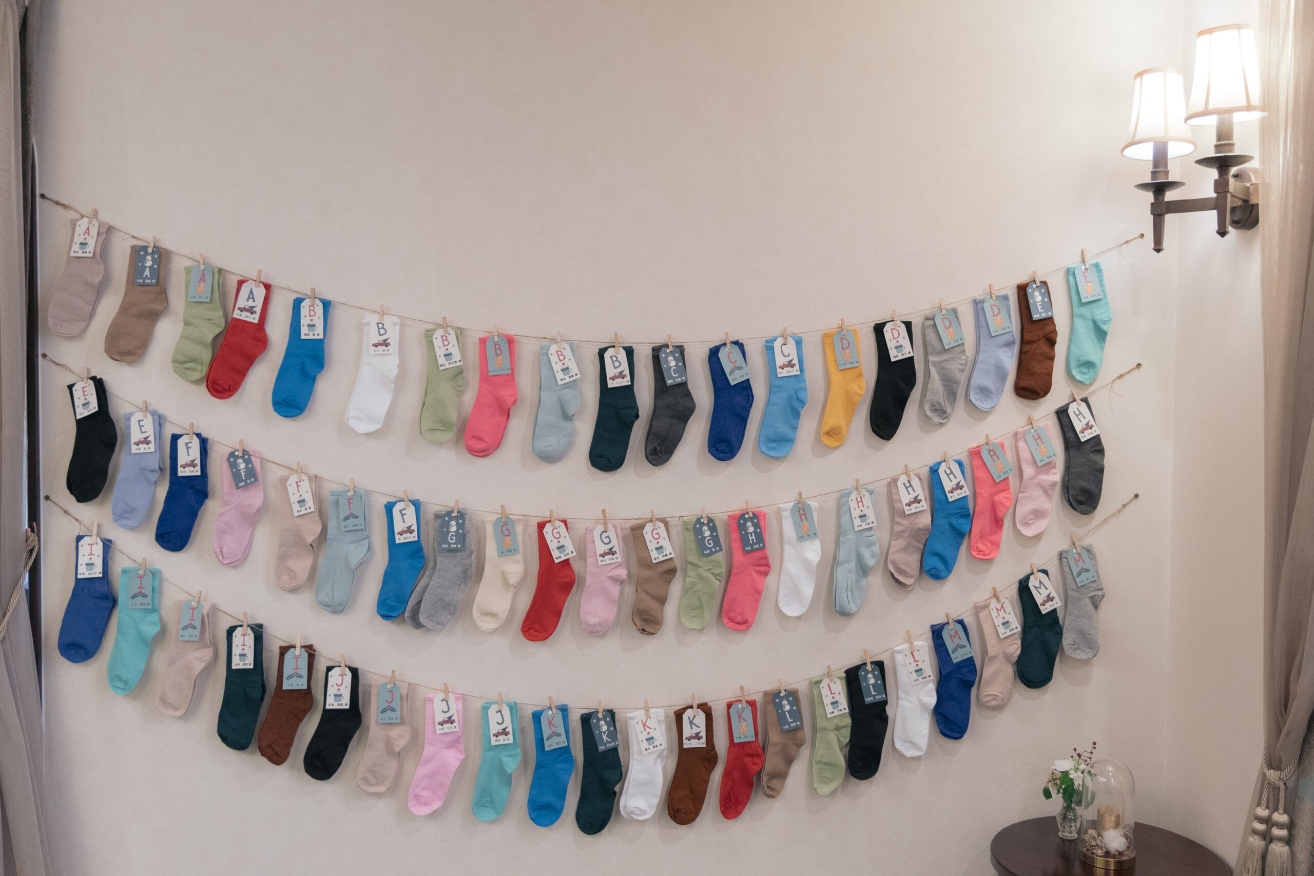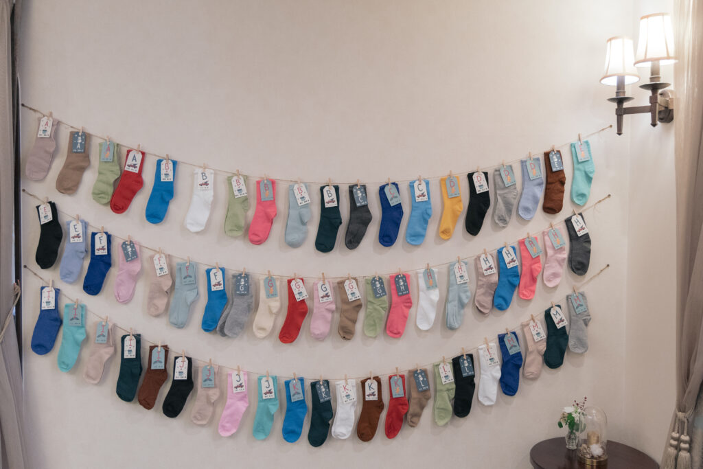 会場に入ると目に飛び込んでくるのは、クリスマスツリーとエスコート靴下。